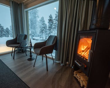 Vi har totalt fem timrade stugor som ligger nedanför restaurangen. Stugorna har en liten veranda med utsikt över sjön. Vi har tre nybyggda sjöstugor med hög standard.